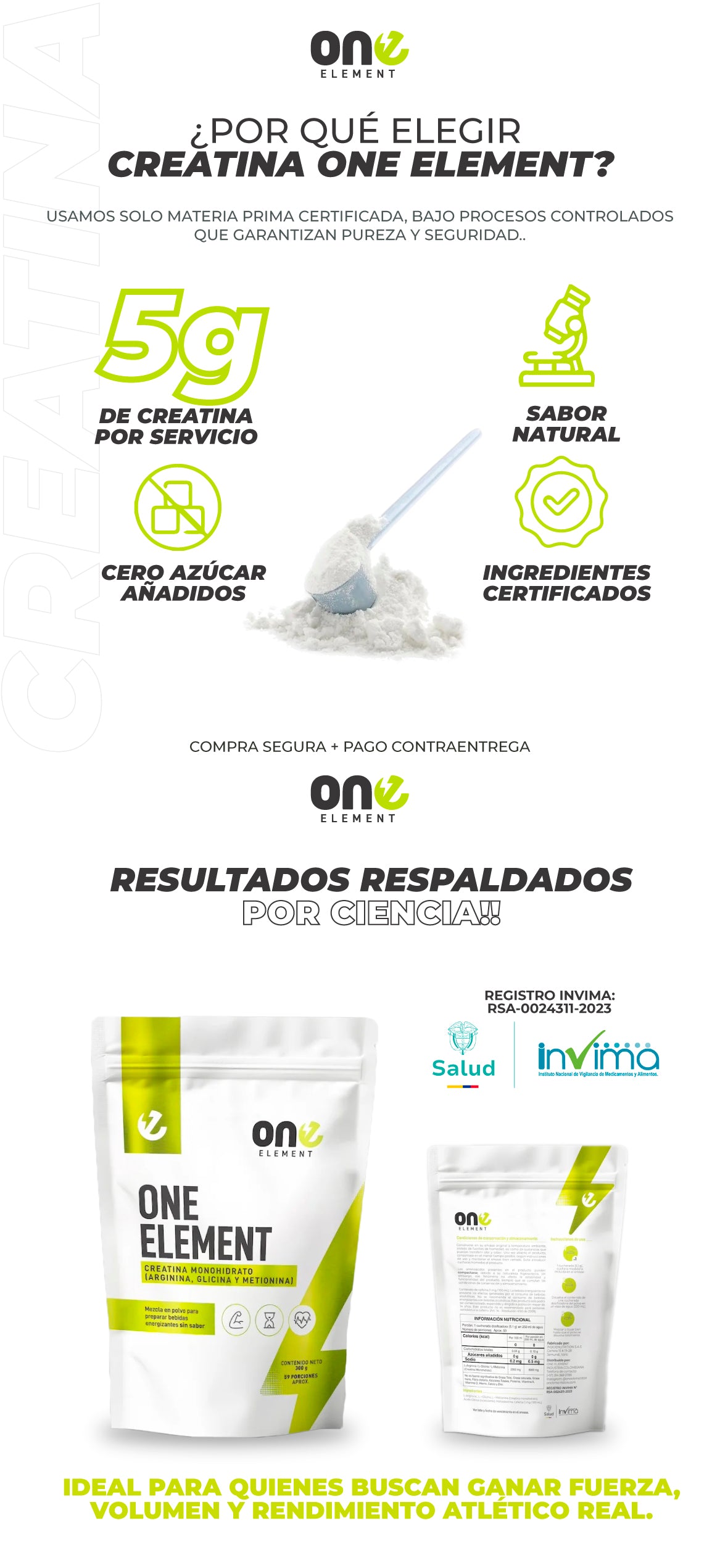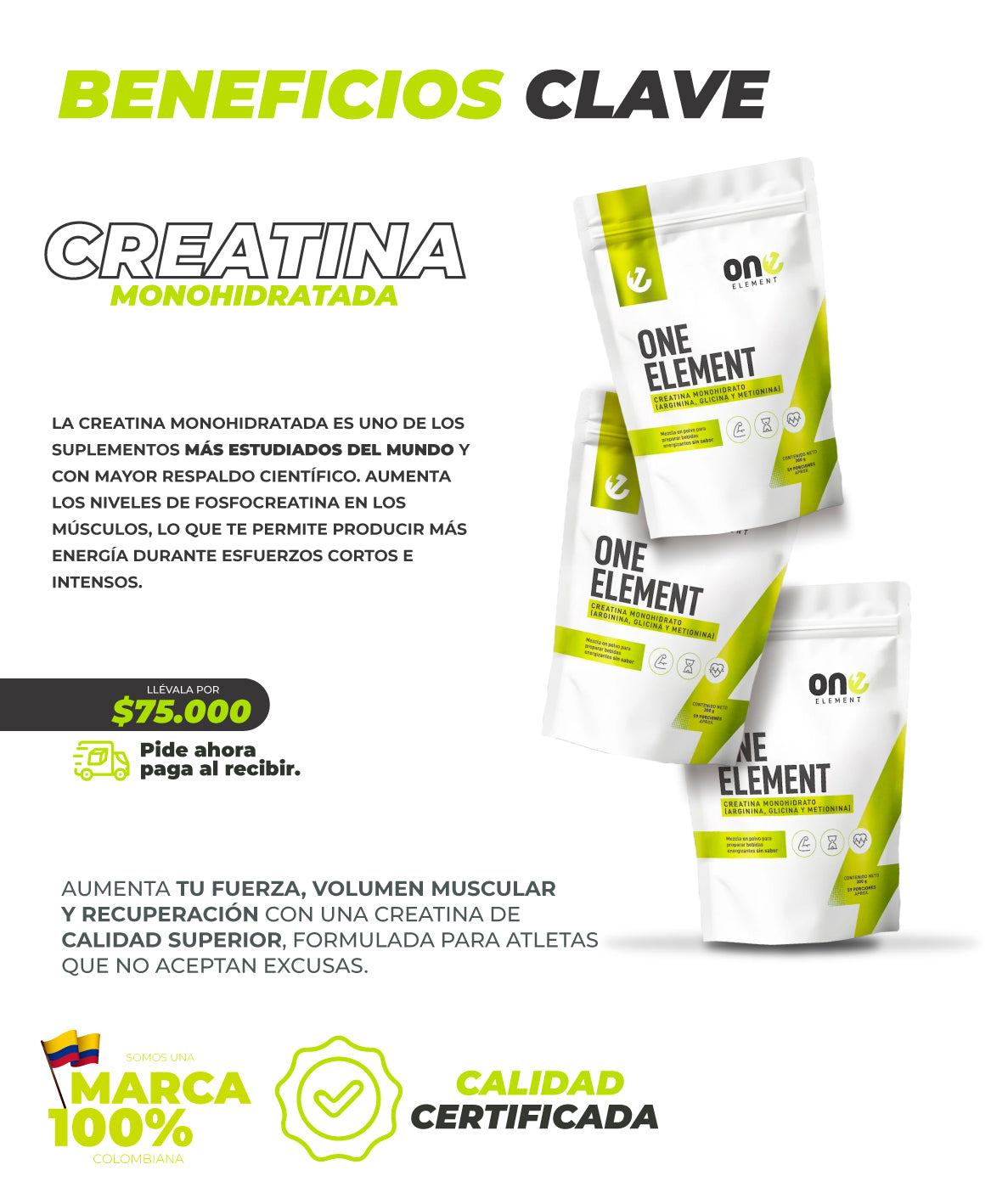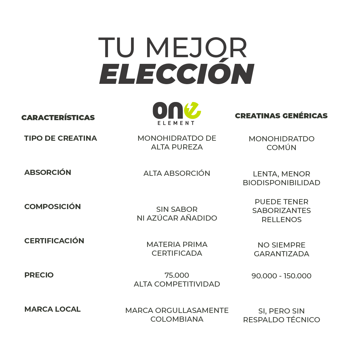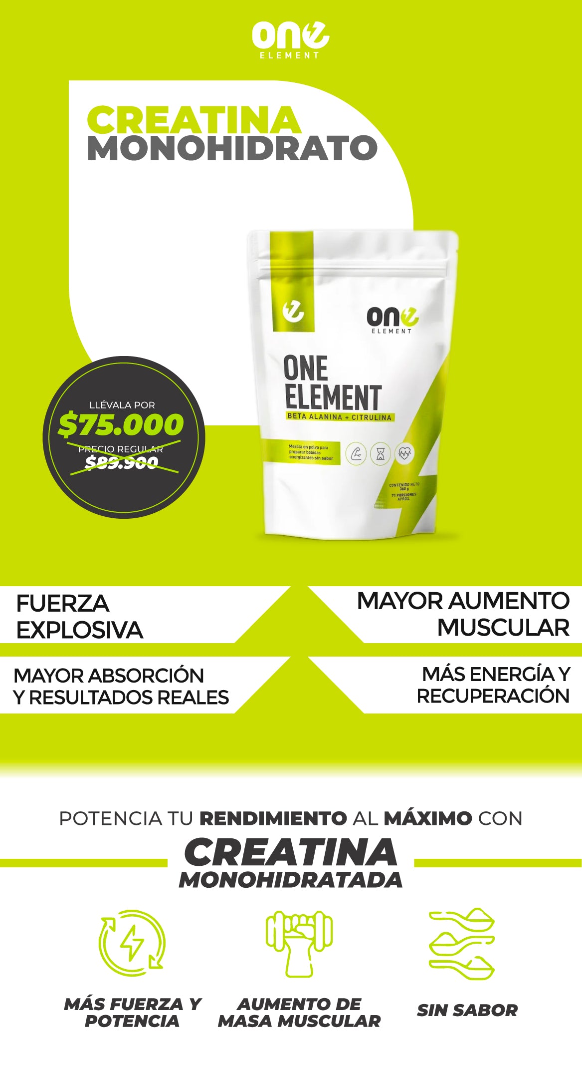 He probado varias creatinas pero esta me pegó sabroso. Buen sabor, buena disolución y sí se siente el empuje en los entrenos. ¡Gracias parce por recomendarme One Element, ahora no la suelto!